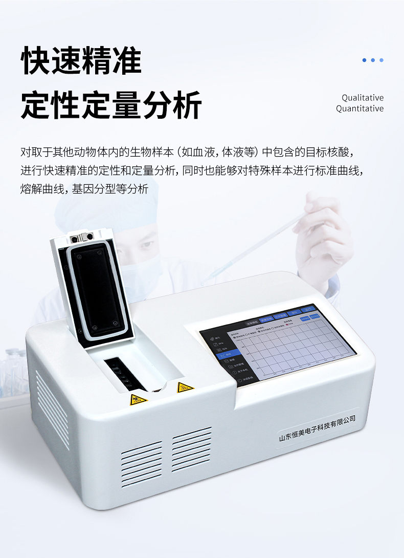 對(duì)取于其他動(dòng)物體內(nèi)的生物樣本(如血液,體液等)中包含的目標(biāo)核酸,進(jìn)行快速精準(zhǔn)的定性和定量分析,同時(shí)也能夠?qū)μ厥鈽颖具M(jìn)行標(biāo)準(zhǔn)曲線,熔解曲線,基因分型等分析。