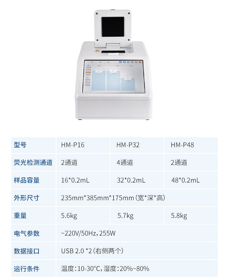 HM-P16型非洲豬瘟PCR檢測(cè)儀主要用于運(yùn)行實(shí)時(shí)熒光定量PCR實(shí)驗(yàn),通過(guò)熒光激發(fā)和采集的方式,對(duì)實(shí)驗(yàn)過(guò)程進(jìn)行實(shí)時(shí)監(jiān)控,將實(shí)驗(yàn)過(guò)程數(shù)據(jù)繪制成熒光曲線,實(shí)時(shí)呈現(xiàn)于儀器顯示界面,并對(duì)實(shí)驗(yàn)數(shù)據(jù)進(jìn)行擬合和分析,*后可生成PDF格式的實(shí)驗(yàn)報(bào)告。