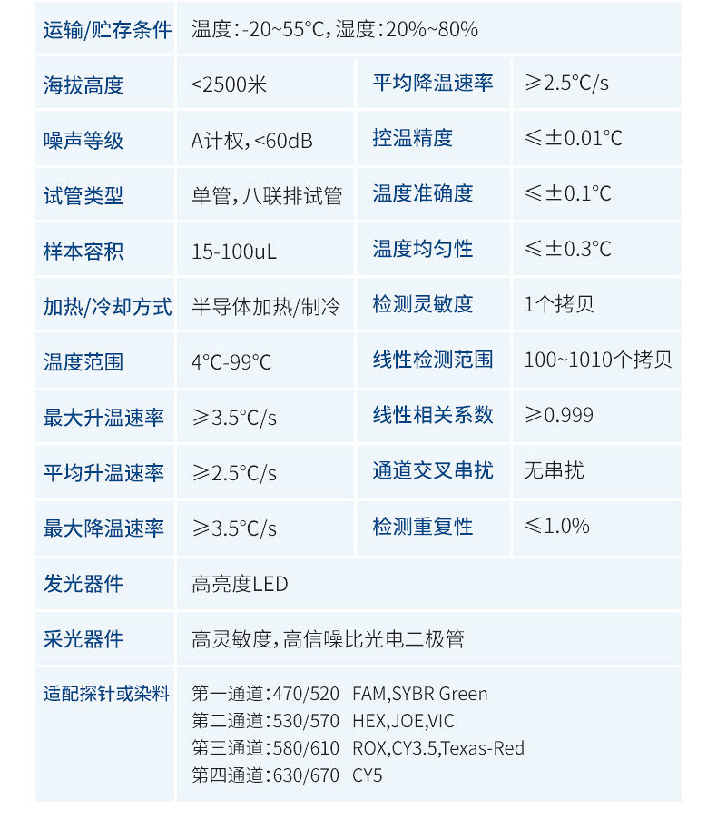 樣本容量 | 16*0.2mL | 32*0.2mL | 48*0.2mL |