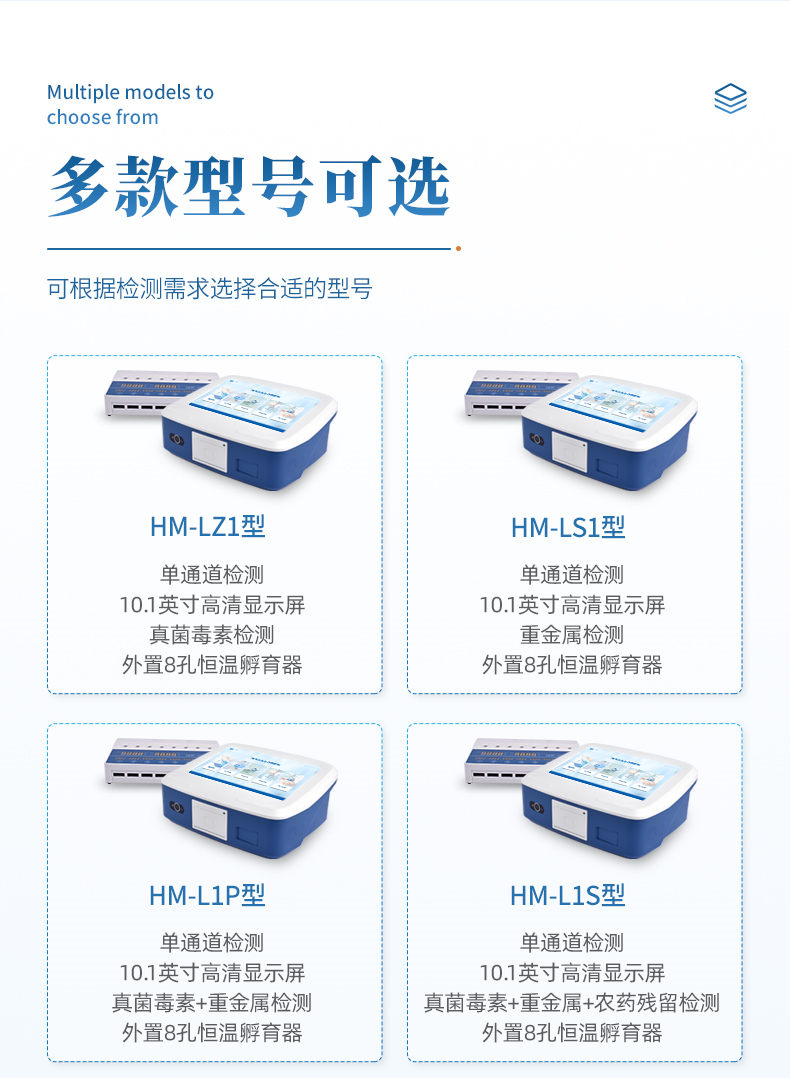 7、內(nèi)置曲線:儀器出廠內(nèi)置定量標(biāo)準(zhǔn)曲線,檢測(cè)過程中無需使用標(biāo)準(zhǔn)品重做曲線,節(jié)省檢測(cè)成本,也避免了操作人員與真菌毒素的接觸,保護(hù)操作人員的安全;