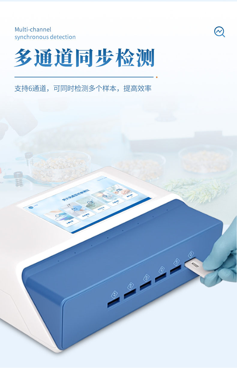 6、多通道設(shè)計(jì):6個(gè)獨(dú)立檢測(cè)通道,可同時(shí)進(jìn)行一種或多種項(xiàng)目的檢測(cè),檢測(cè)效率高,且互不干擾;
