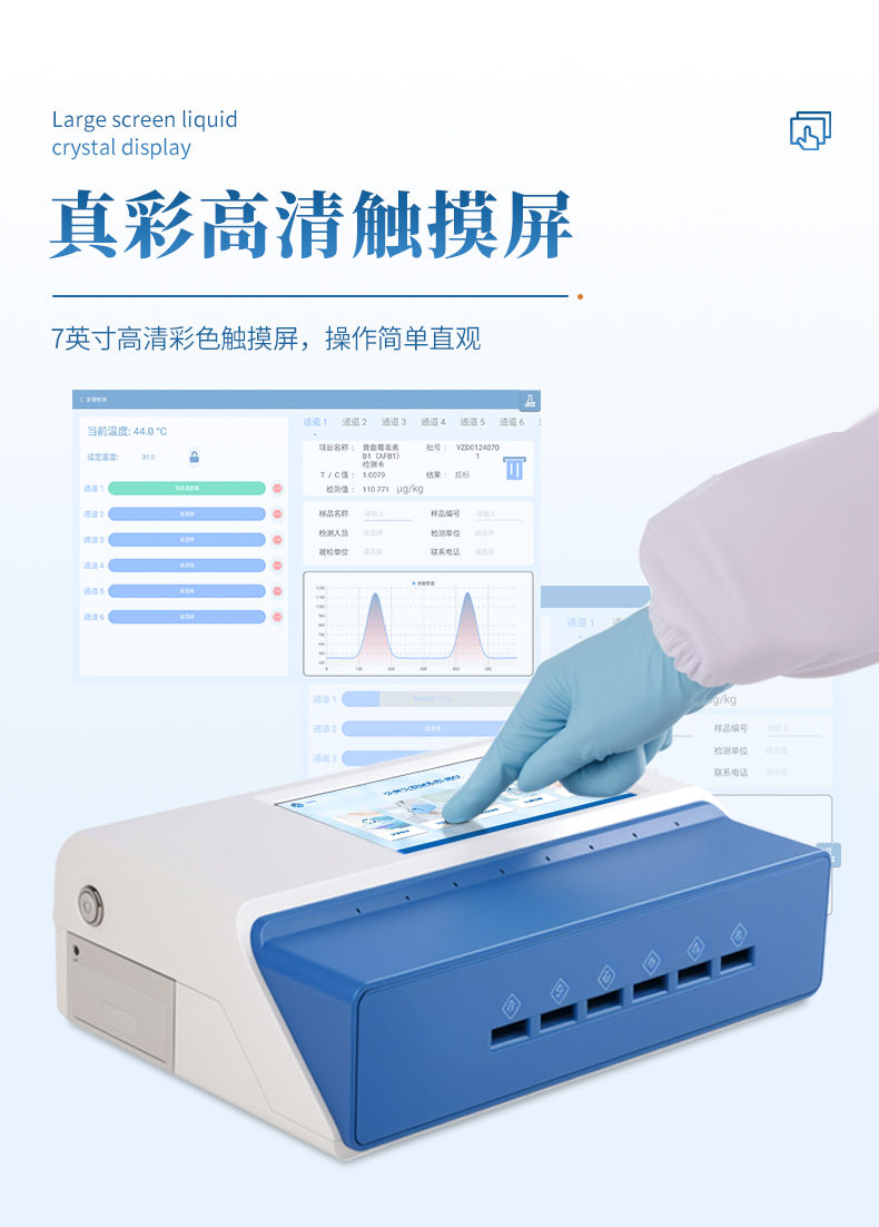 10、數(shù)據(jù)存儲(chǔ):存儲(chǔ)數(shù)量10萬+條、內(nèi)置查詢、統(tǒng)計(jì)、批量數(shù)據(jù)處理等功能; 11、結(jié)果顯示:除內(nèi)置數(shù)據(jù)查看,儀器自帶熱敏打印機(jī),可實(shí)時(shí)打印檢測(cè)結(jié)果; 12、3分鐘工作狀態(tài)(37℃),封閉系統(tǒng),不受外界環(huán)境(光、熱)干擾;