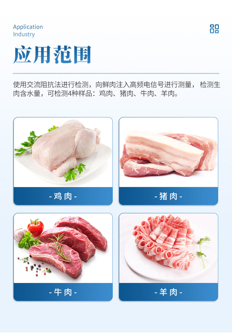 檢測生肉含水量,可檢測4種樣品:雞肉、豬肉、牛肉、羊肉。