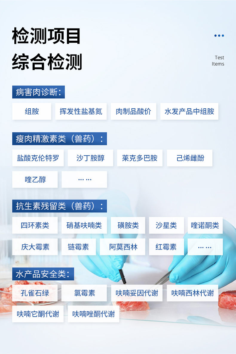 病害肉診斷:組胺、揮發(fā)性鹽基氮、肉制品酸價(jià)、水發(fā)產(chǎn)品中組胺