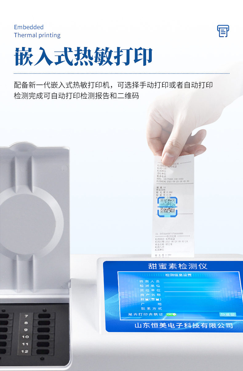 4、配備新一代嵌入式熱敏打印機(jī),可選擇手動(dòng)打印或者自動(dòng)打印,檢測(cè)完成可自動(dòng)打印檢測(cè)報(bào)告和二維碼。