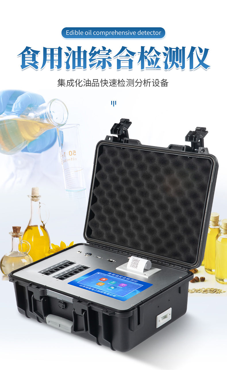 食用油綜合檢測儀為集成化油品快速檢測分析設(shè)備,能夠快速檢測食用植物油、食用豬油、花生油、葵花油、米糠油、食品、肉制品中的酸價(jià)、過氧化值、黃曲霉毒素等含量;通過檢測可確定植物油是否符合國家標(biāo)準(zhǔn)或是否為酸敗油、劣質(zhì)油、地溝油等。儀器預(yù)留其他項(xiàng)目檢測程序和端口,根據(jù)日后需求可方便的自主增加檢測項(xiàng)目。日后可升級為檢測水產(chǎn)品、面制品的綜合類型儀器。