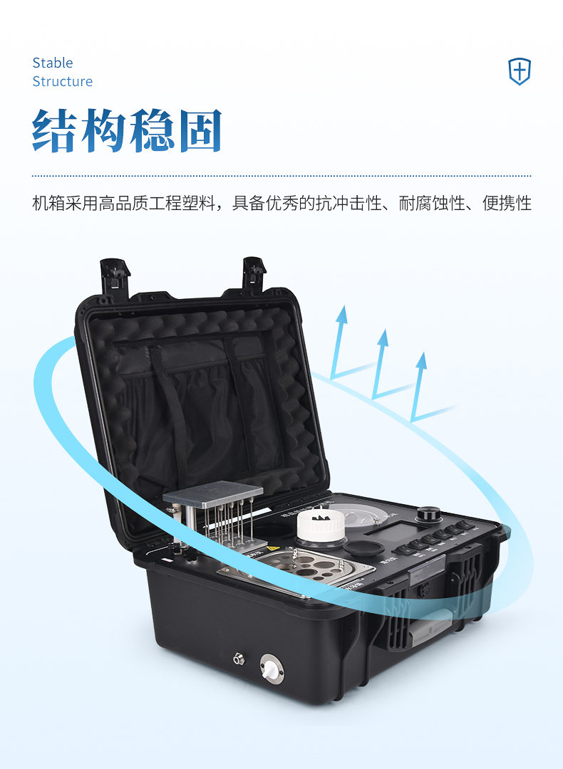 2、結(jié)構(gòu)穩(wěn)固,機箱采用高品質(zhì)工程塑料,具備**的抗沖擊性、耐腐蝕性、便攜性。