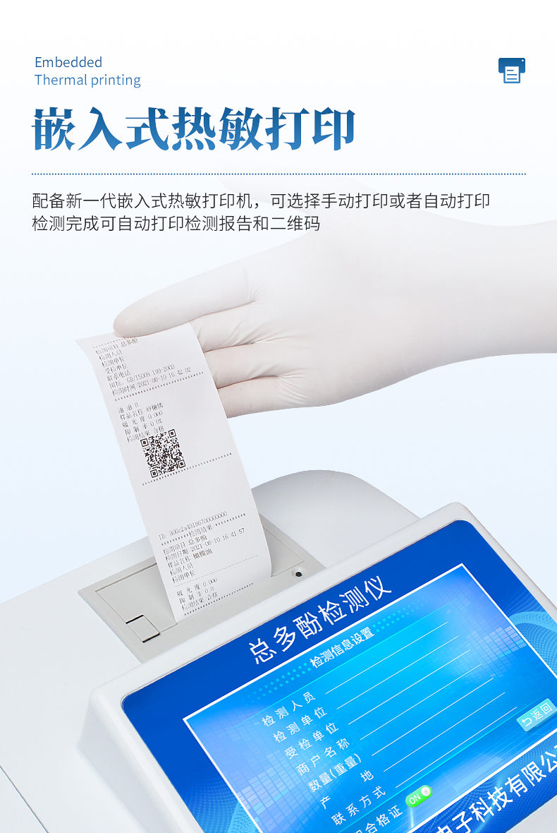 6、配備新一代嵌入式熱敏打印機(jī),可選擇手動(dòng)打印或者自動(dòng)打印,檢測完成可自動(dòng)打印檢測報(bào)告和二維碼。