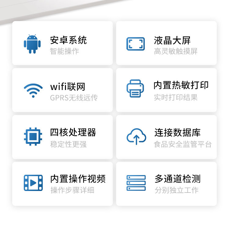 7、具有多個(gè)食品安全檢測(cè)項(xiàng)目,開放平臺(tái),可以增減檢測(cè)項(xiàng)目。