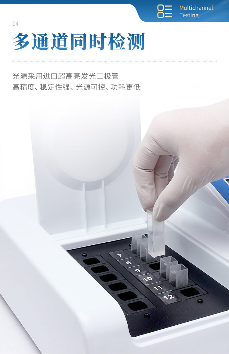 8、檢測(cè)通道:12個(gè)檢測(cè)通道,可以同時(shí)測(cè)試多個(gè)樣品,每個(gè)樣品由程序控制分別獨(dú)立工作,不會(huì)互相干擾。