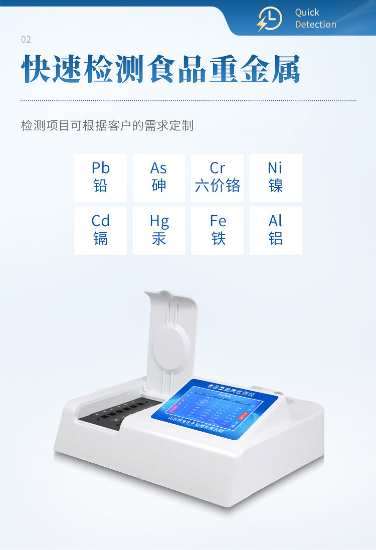 TZ01重金屬檢測(cè)儀可廣泛應(yīng)用于大米、糧谷、果品、蔬菜、藥材、水質(zhì)、水產(chǎn)品中重金屬鉛、鎘、六價(jià)鉻、汞、砷、鐵、鎳、鋁(任選1項(xiàng))的快速檢測(cè),檢測(cè)項(xiàng)目可根據(jù)客戶的需求定制。