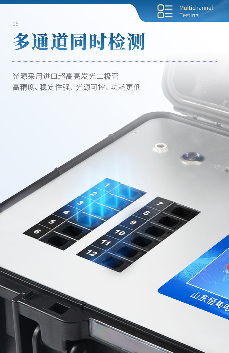 6、檢測(cè)通道:12檢測(cè)通道,可以同時(shí)測(cè)試多個(gè)樣品,每個(gè)樣品由程序控制分別獨(dú)立工作,不會(huì)互相干擾。