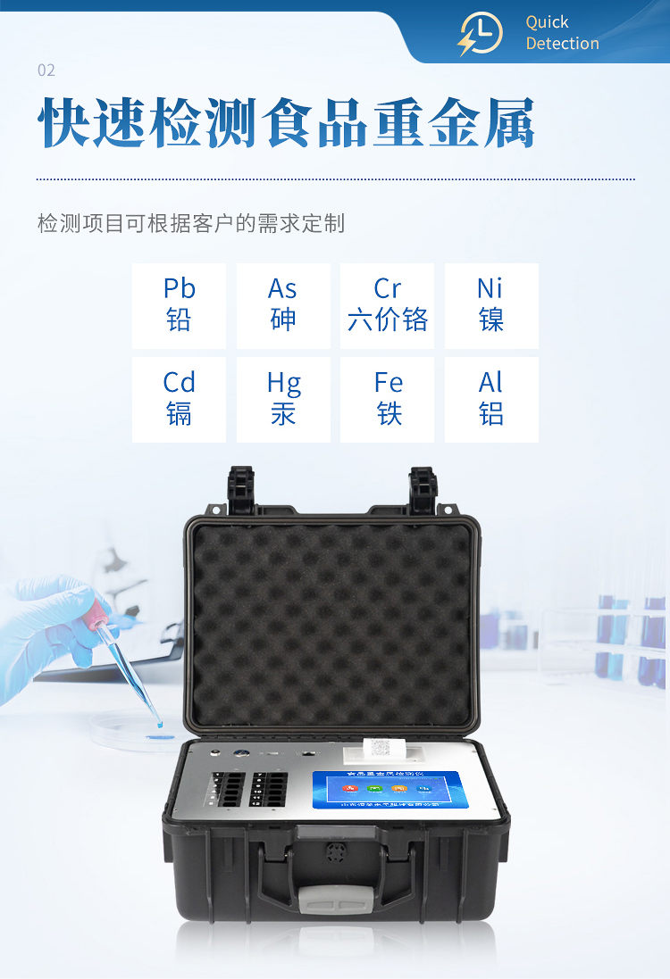 BZ01重金屬檢測(cè)儀可廣泛應(yīng)用于大米、糧谷、果品、蔬菜、藥材、水質(zhì)、水產(chǎn)品中重金屬鉛、鎘、六價(jià)鉻、汞、砷、鐵、鎳、鋁(任選1項(xiàng))的快速檢測(cè),檢測(cè)項(xiàng)目可根據(jù)客戶的需求定制。